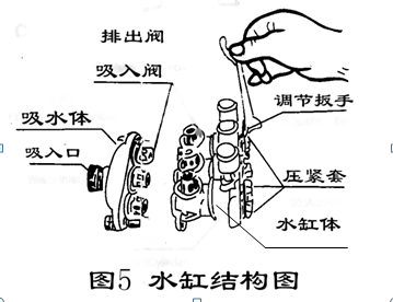 5、在较长时期停止工作时,将水排净,从吸入口吸灌些防锈油。