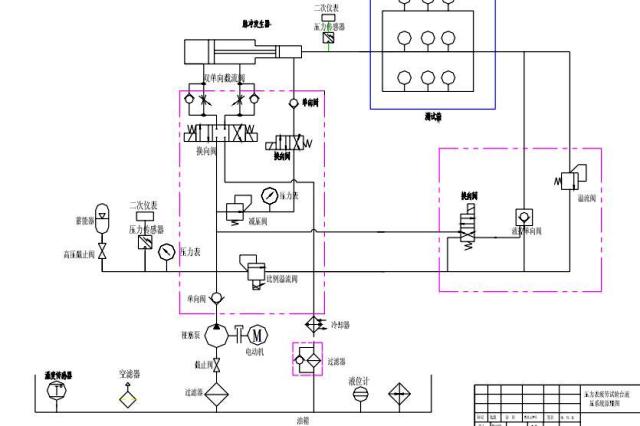 原理简介:安装好工件,调节调压阀的压力为工件测试工件的波谷压力,设定比例调压阀的压力为测试工件的波峰压力;比例换向阀左边得电,系统升低,比例换向阀的右边得电,系统缷压。以此反复执行,完成脉冲试验。升压时间,保压时间设定好之后,计算机自动执行。