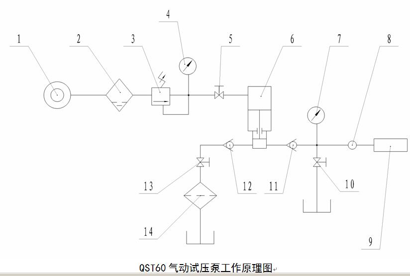 5.驱动空气截止阀 6.气泵 7.驱动空气压力表 8.高压出口