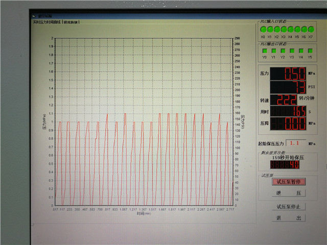 3.设备可实现0-5MPA的工作循环压力,压力时试验压力从0到2.0MPA再回到0,每分钟循环6次,共5000次,压力控制精度±2%;