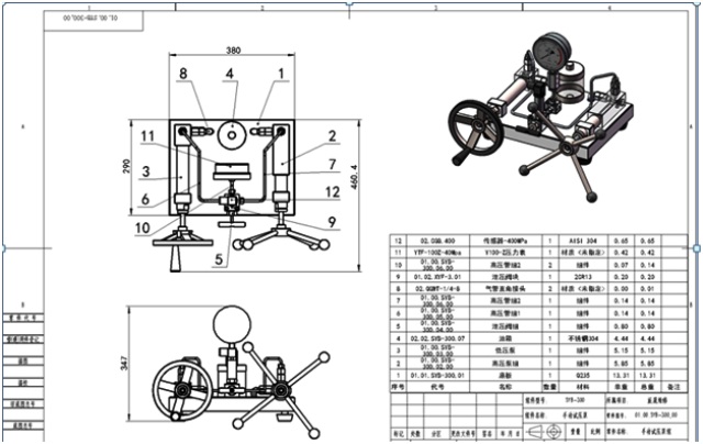 手动试压泵主要由工作台,高、低压手动泵,手动泄压系统和油箱,管路系统等构成。